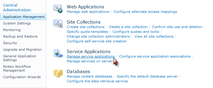 Note: If the Nintex Workflow 2010 configuration database in the Database settings page is modified, you may need to repeat these configuration steps to ensure permissions are set up correctly.