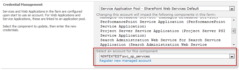 Activating the Manage Service Account provides the account running the ‘Microsoft Project Server Queue Service 2010’ access to the Nintex Workflow 2010 database. When workflows are running within this process (a part of normal operation) they will connect to the Nintex Workflow 2010 database with this account.