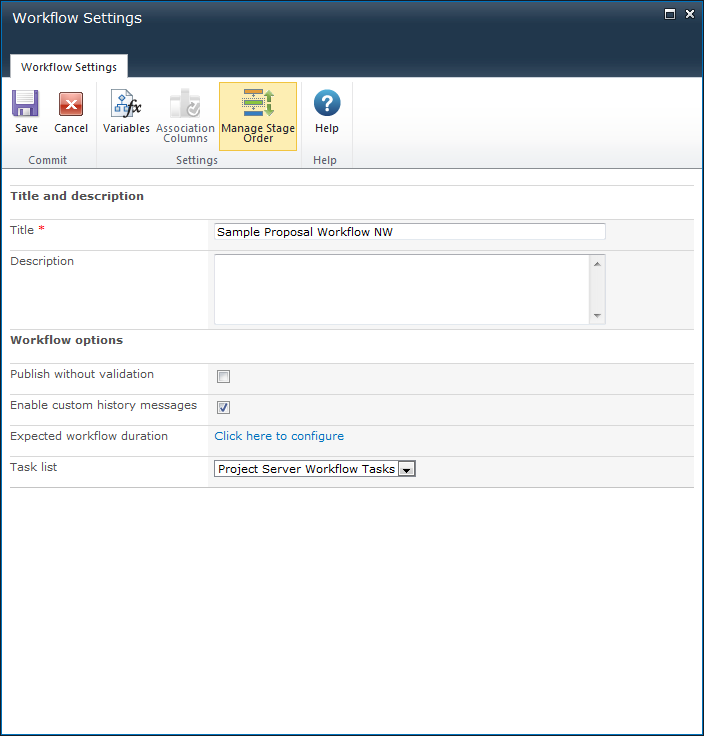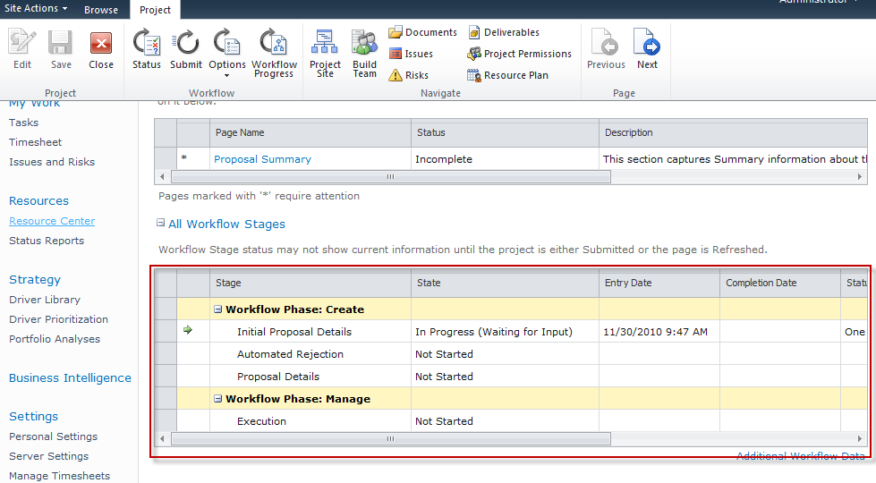 When a Project Server workflow is published, the Stages that are used in the workflow are added to the Project Server Workflow Status page. The Stages in the workflow are ordered top to bottom moving from left to right and therefore may not appear in the desired order within the Project Server Workflow Status page for users to understand.