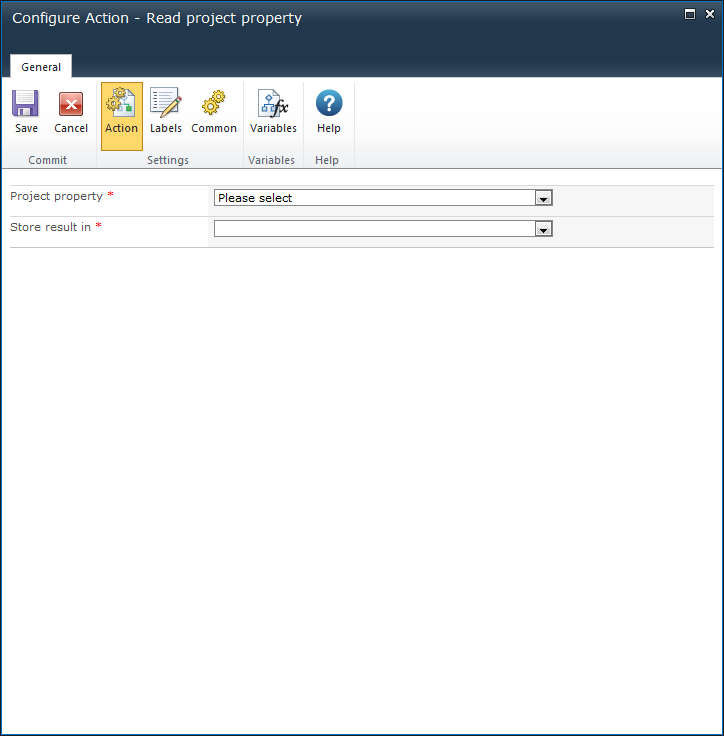 This workflow action can be used to retrieve the specified project property and store the value into a workflow variable.