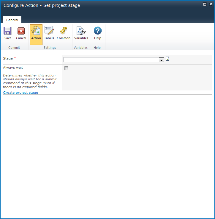 Selecting this option causes the action to pause if the value is blank, until a user fills in the value for the Project property and presses the Submit button.